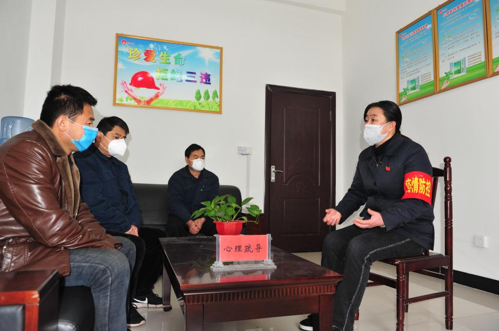 礦內實行封閉式管理,嚴格控制人員進出,職工食堂缺少人手。全國最美好礦嫂、全國優秀協安員、青東煤業“李莉心理疏導室”負責人,物業公司黨員李莉在這一時刻扮演了“雙重角色”,在工作中她對食堂宿舍進行衛生消毒,在業余時間她主動當好職工的“心理疏導師”,緩解在礦職工心理壓力,為職工義務盛飯打菜。“公司每天為職工檢查體溫,嚴禁外來人員進礦,為職工發放消毒液、洗手液、口罩,嚴格執行分餐分浴制度,對于違反規定的相關責任人按嚴重‘三違’處理,這樣銅墻鐵壁式的管理,我們職工對自己的健康很放心!”李莉信心滿滿地說。