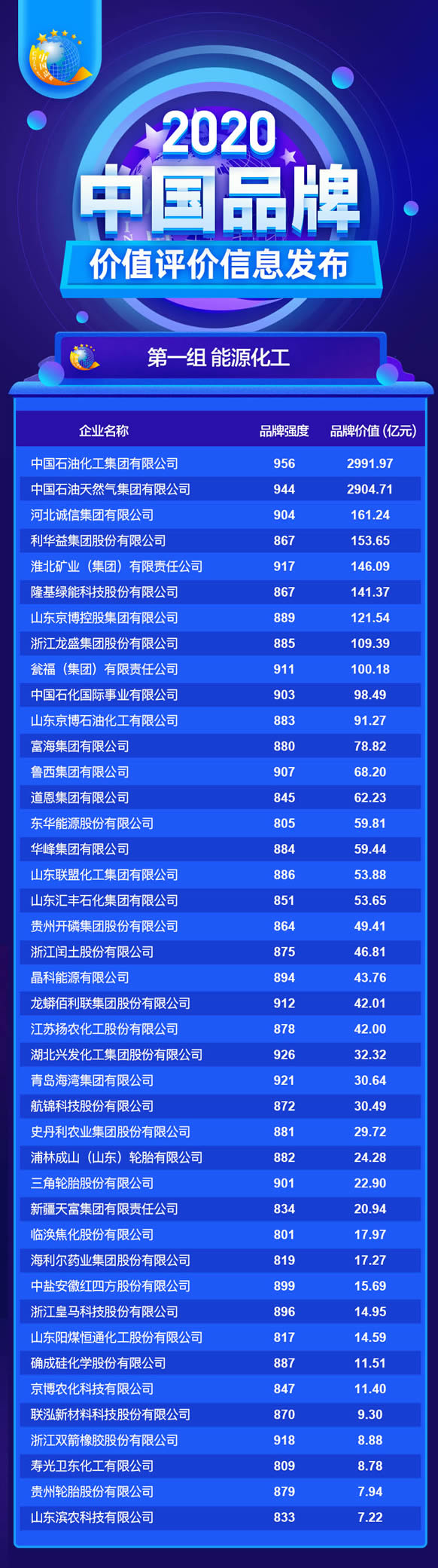 5月10日,值我國第四個中國品牌日之際,中國品牌建設(shè)促進會聯(lián)合中國資產(chǎn)評估協(xié)會等單位在新華網(wǎng)舉行“2020中國品牌價值評價信息發(fā)布”活動。在此次活動中,淮北礦業(yè)集團企業(yè)品牌強度被評定為917,品牌價值146.09億,位列能源化工組第五位;臨渙焦化品牌強度801,品牌價值17.97億,位列第31位。這也是今年以來繼臨渙焦化和華塑股份公司獲得“安徽省商標品牌示范企業(yè)”之后,品牌建設(shè)取得的又一項重要成果。