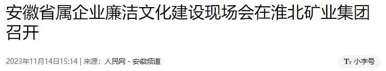 11月14日,安徽省屬企業(yè)廉潔文化建設(shè)現(xiàn)場會在淮北礦業(yè)集團召開。會議通過觀摩學(xué)習(xí)、經(jīng)驗交流等方式,集中展示省屬企業(yè)廉潔文化建設(shè)和清廉國企建設(shè)的工作成效,明確下一步工作目標(biāo)和方向,推動省屬企業(yè)廉潔文化建設(shè)走深走實,不斷優(yōu)化凈化國有企業(yè)政治生態(tài),為國資國企高質(zhì)量發(fā)展提供堅強保障。