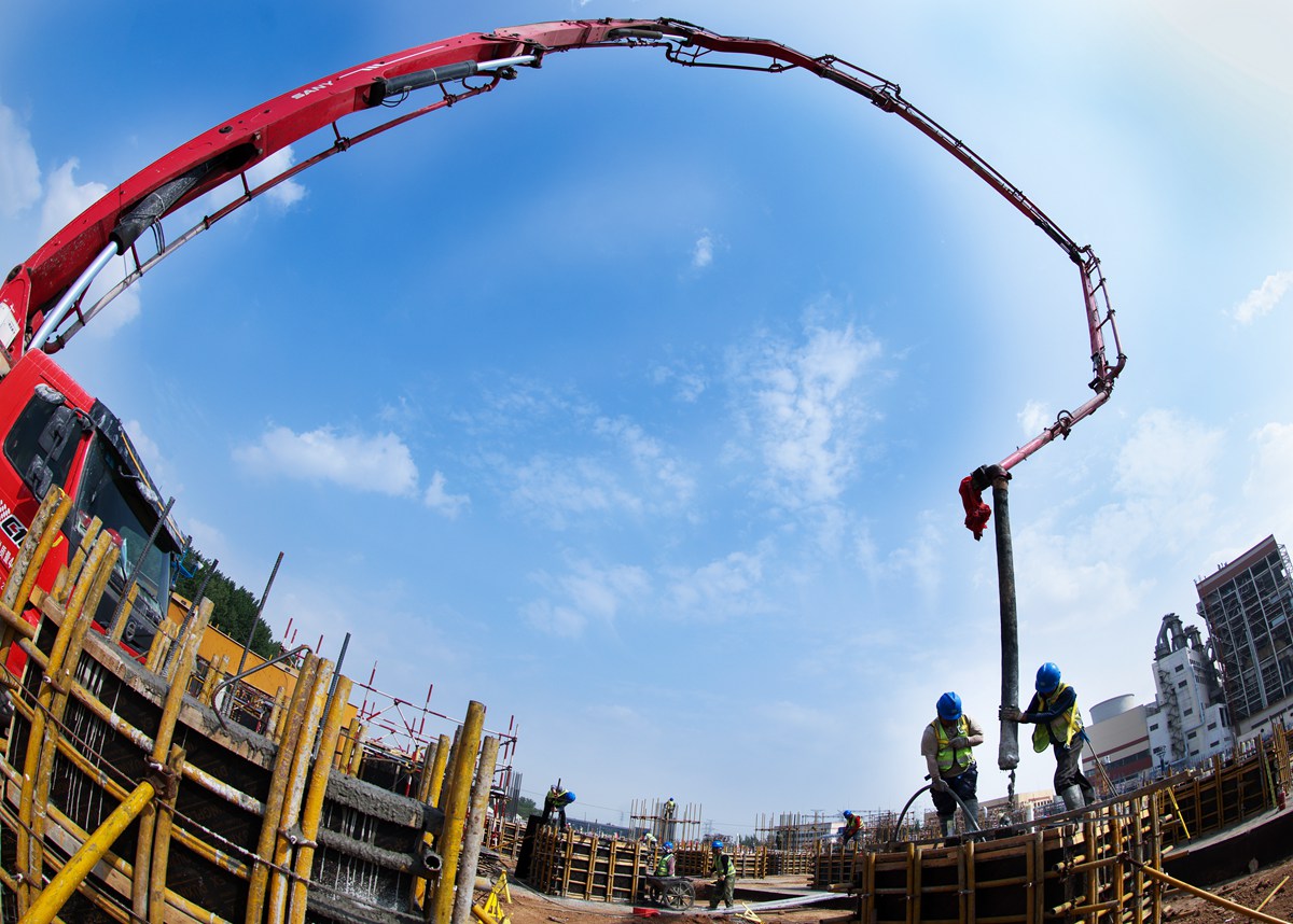 泵車正在澆注聚能發(fā)電公司機(jī)組項(xiàng)目鍋爐承臺(tái)短柱