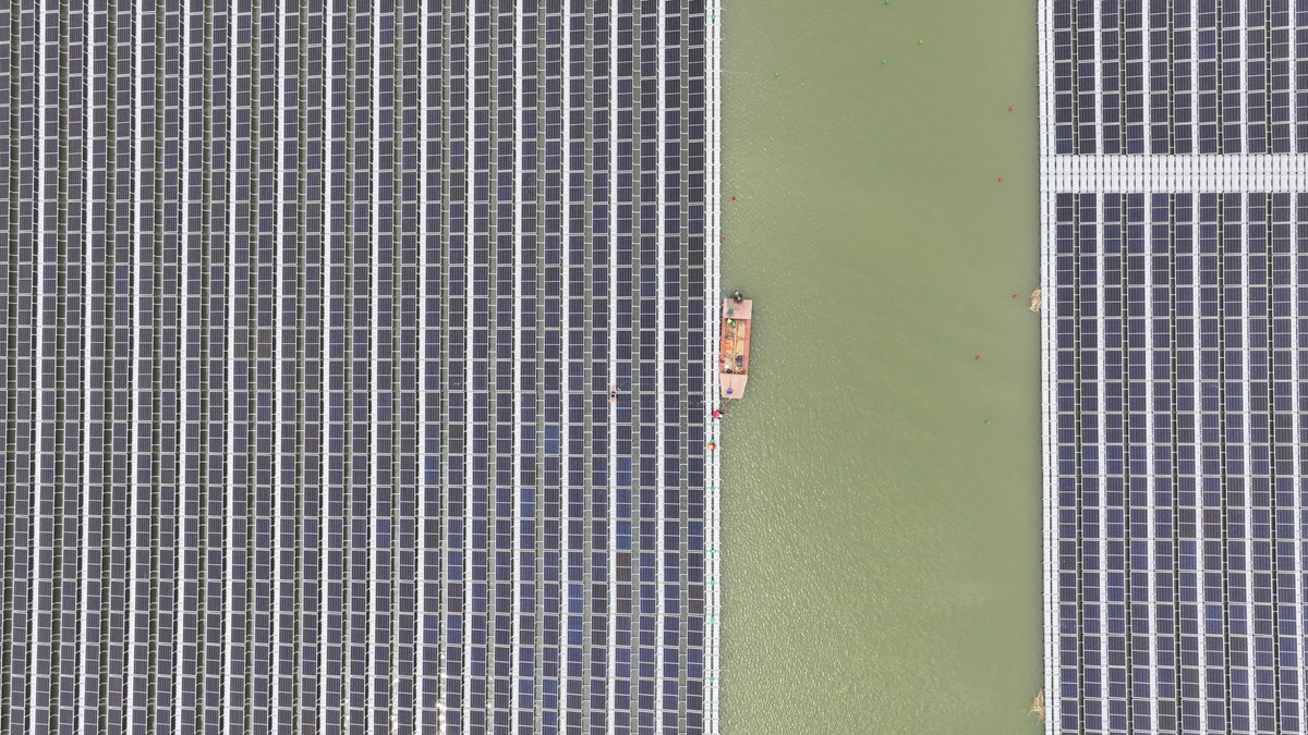 5月11日,航拍電力分公司青東塌陷區(qū)28MW水面光伏發(fā)電項(xiàng)目建設(shè)現(xiàn)場(chǎng)