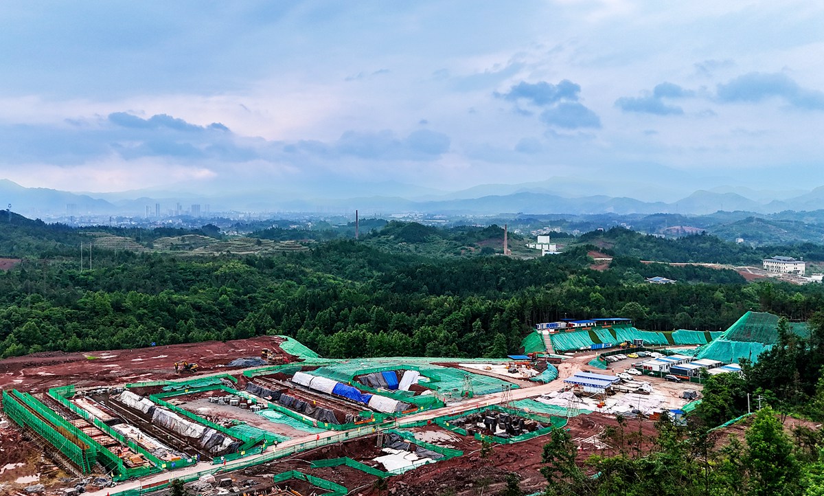 5月13日,航拍雷鳴科化靖州八姑巖礦山建設(shè)項(xiàng)目基建施工現(xiàn)場(chǎng)
